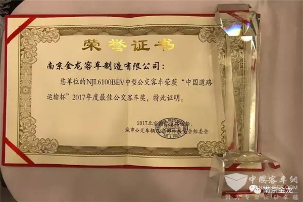 NJL6100BEV获得“中国道路运输杯”最佳公交客车奖