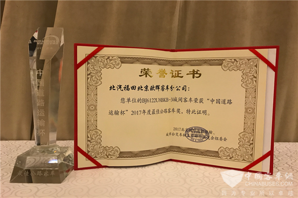 福田欧辉BJ6117纯电动城间客车荣获“梦想客车”称号