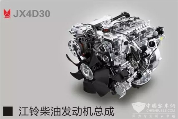 车型搭载了江铃JX4D30柴油发动机,该发动机源自国际著名的五十铃柴油发动机技术,最大功率:112kW,最大扭矩:382N·m;采用中冷增压、EGR废气再循环技术、博世高压共轨系统,提升了燃油经济性,燃烧更充分,噪音更低。