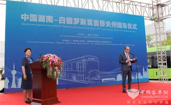 纯电动巴士赠予莫吉廖夫州,代表了湖南省与莫吉廖夫州两省州友谊的开始,更是中国与白俄罗斯建交25周年的友好关系深化的见证,为两国搭建起新能源汽车工业交流与合作的桥梁,为“一带一路”政策推动下的中白合作注入新动力。