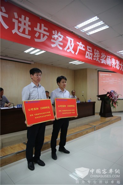 2017年6月20日,宇通客车2016年度科学技术进步奖及产品线奖励表彰大会在宇通工业园隆重召开,本次大会针对宇通2016年度在产品、技术、工艺制造等方面表现出色的技术与研发团队,以及2016年度市场反馈优异的产品研发团队进行表彰,奖金总额高达951万元,其中,科技进步奖497万元,产品线奖454万元。