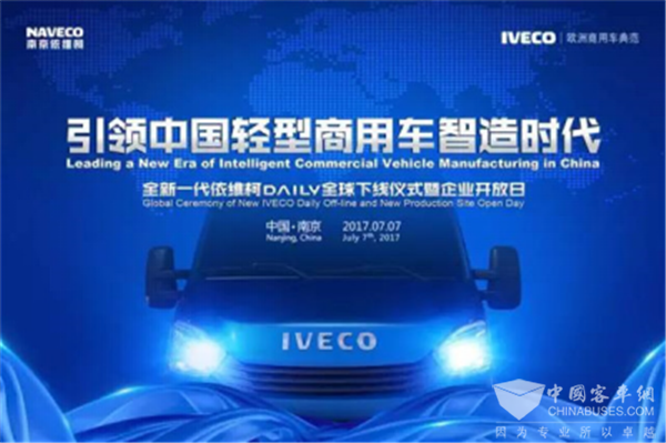全新一代依维柯DAILY,是南京依维柯在桥林基地下线的首款新产品,公司总经理杨军虎在下线仪式上表示:全新一代依维柯DAILY,是依维柯凭借30年的中国市场经验,57万辆车的用户积累,准确洞察细分市场的发展趋势,基于欧洲同步产品技术,适应中国细分市场需求,完整覆盖了轻型商用车产品线的全新一代产品系列。产品通过差异化的技术配备及针对性的底盘调教,分别最大限度地满足商旅通勤、客货两用、专业物流和个性化的改装市场需求。IVECO品牌凭借其强大的技术优势及最为专业的商用车开发实力,伴随着全新一代IVECO产品系列推出,将无可争议的创造高端轻型商用车最为完整产品线的全球第一。公司已经具备制造全球一流商用车产品的能力,是南京依维柯全力打造世界级制造的重要里程碑!