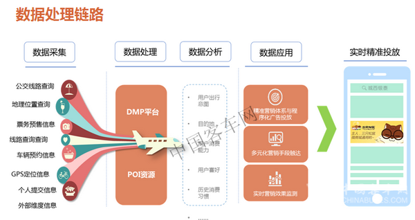 杭州公交合与阿里巴巴合作的“云公交服务”,利用移动支付,把线下乘客转化为线上会员,实现公交数据运营服务,利用公交车的站点定位,把公交乘客会员与商家连接,通过云平台了解会员的消费习惯,进而定向推送产品广告和消费卡券。