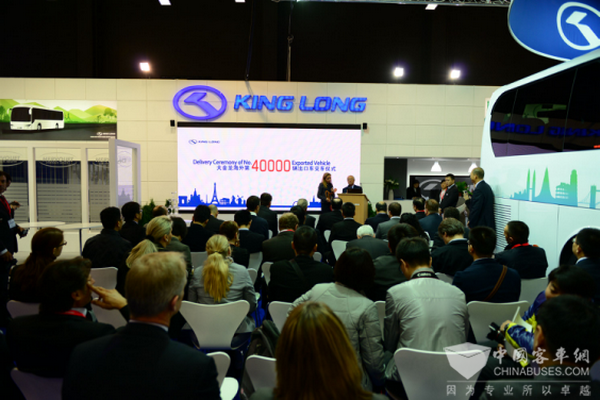 2013年,金龙客车在Busworld举行出口四万辆交车仪式