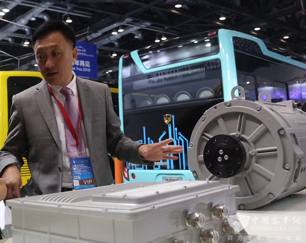 此次展出的联孚HKC6123CHEV混合动力公交车和HKC6110BEV纯电城市公交车车型大气敞亮,外观明快亮丽,内饰简洁大方,设计科技感十足,最引人注目的是,这家企业的展台比其他客车企业多了一些展示产品:电机、电控、太阳能板。