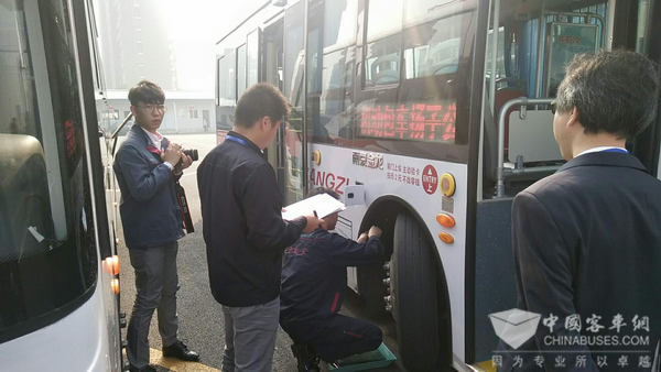 为了加强对车辆的安全管控,扬子公交与南京金龙展开技术合作,共同打造车辆技术及维护服务平台,成立“新能源公交车服务中心”,建立了新能源车辆制造厂家与使用者紧密合作的维保体系,并不断地扩大体系服务范围,将电动空调、电动气泵、电动转向助力泵等“小三电”,与电池、电机、电控等“大三电”一样纳入维保体系,共管共控。