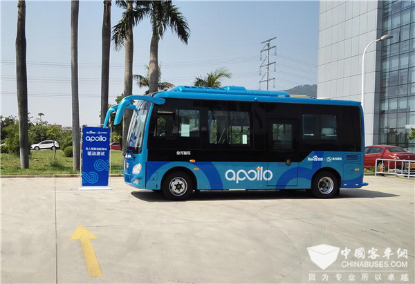 2017年10月17日,在百度与金龙客车战略合作协议签约仪式上,双方一起揭晓了金龙客车第二代无人驾驶微循环车量产及试运营计划。这款无人驾驶微循环车将是国内首款量产的无人驾驶巴士,Apollo平台除了提供自动驾驶解决方案之外,还渗透到整车设计全过程,包括整体车辆外观和内饰设计、人车交互系统的整体设计、特定场景需求架构设计以及微循环车特定的自动驾驶系统设计等环节。