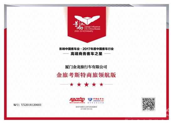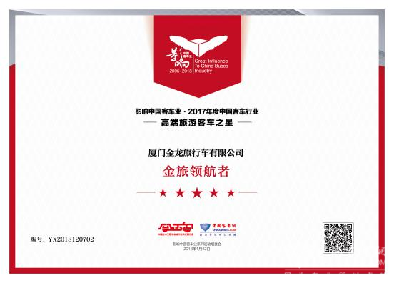 金旅领航者强摘“2017年度高端旅游客车之星”