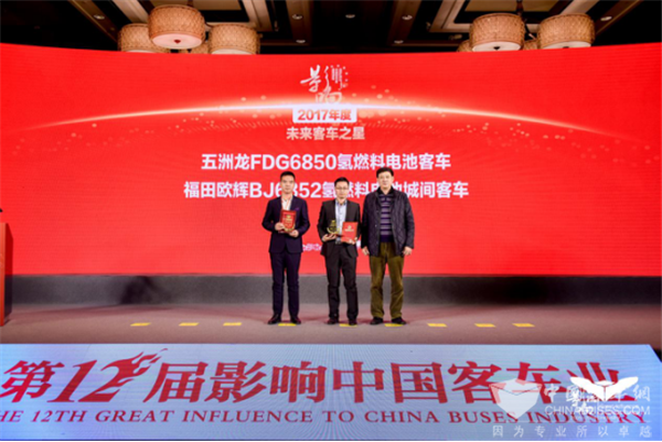 五洲龙FDG6850氢燃料电池客车荣获“未来客车之星”称号