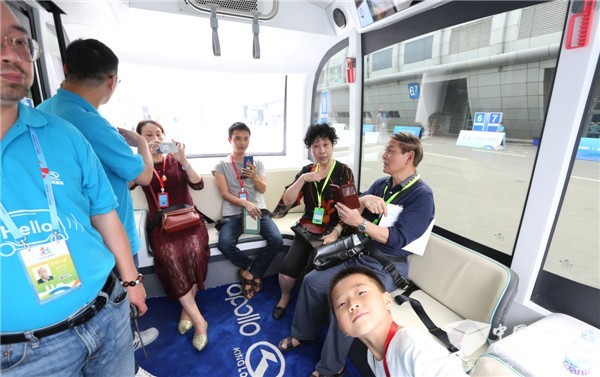 体验无人驾驶热情高涨 大批观众排队等候