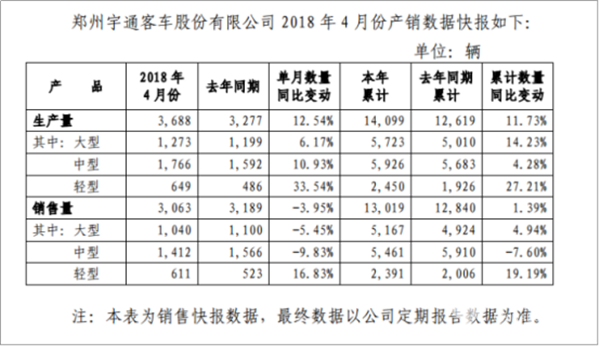 细分市场多面开花 宇通4月份产销数据看点几何?