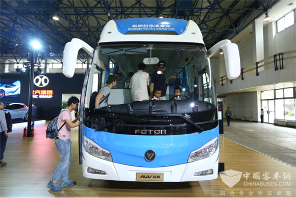 参会观众纷纷被福田欧辉氢燃料电池客车吸引驻足