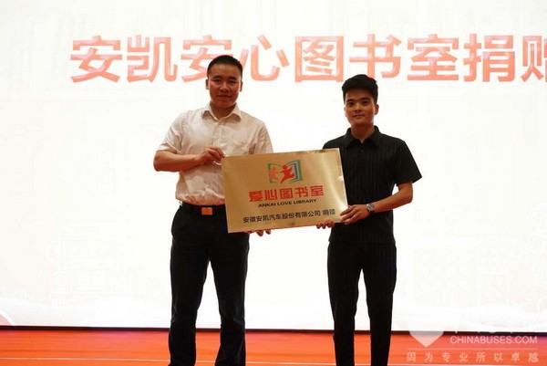同时踏着“百城千校——安凯校车公益行”的脚步,安凯客车现场向安徽庐江县和湖北巴东县的两所留守儿童小学捐赠爱心图书室,给孩子们带来丰富的精神食粮和社会的关爱,让孩子在阳光下学习,在快乐中成长。