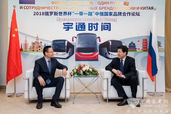 当地时间7月2日下午,2018世界杯“一带一路”中俄国家品牌合作论坛在莫斯科红场古姆会议中心举行,郑州宇通客车作为中国品牌代表在论坛上奉献了精彩的“宇通时间”,中国驻俄罗斯大使李辉出席论坛,并盛赞“宇通模式”。