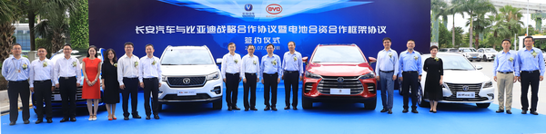 2018年7月5日,长安汽车与比亚迪在深圳签署战略合作协议,且将联合设立以新能源动力电池生产、销售为主营业务的合资公司。双方将联合各自在传统汽车、新能源汽车、智能互联网、共享出行、海外市场等领域的优势资源,围绕汽车电动化、智能化、共享出行等领域展开全方位深度合作,实现优势互补、互利共赢,合力推动中国汽车工业发展,并为广大消费者带来更加绿色、智能的出行体验和服务。