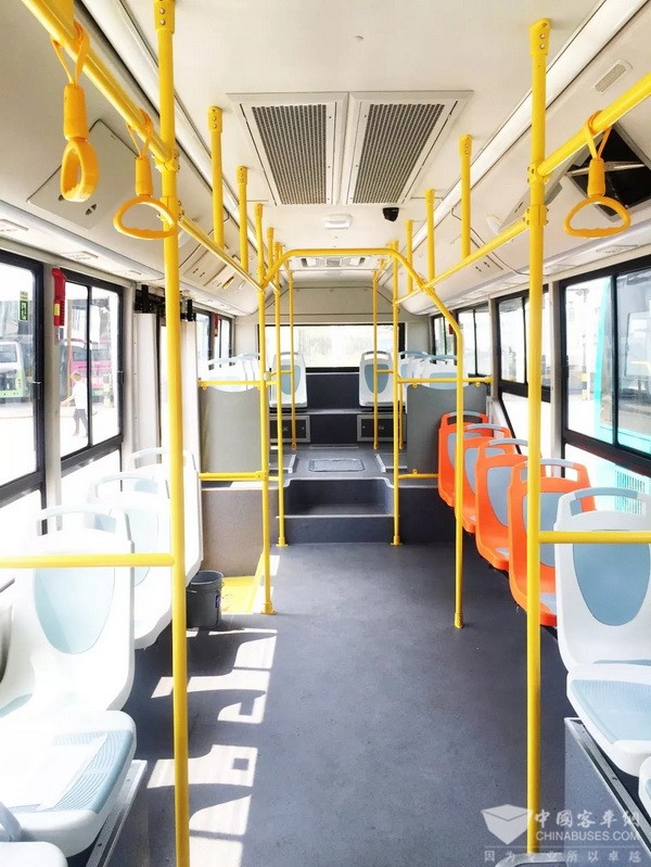驾驶区,全新设计仪表台,充分考虑人机工程进行优化,加高档司机座椅选装,优化司机乘坐舒适性,凸显驾驶的乐趣。中控显示屏可配置10寸大屏,便于司机查看信息;采用中车自主研发的智能仪表,可多功能、多界面显示,电气系统信息、智能维保预测、驾驶行为分析、整车能耗分布等多屏显示一目了然。
