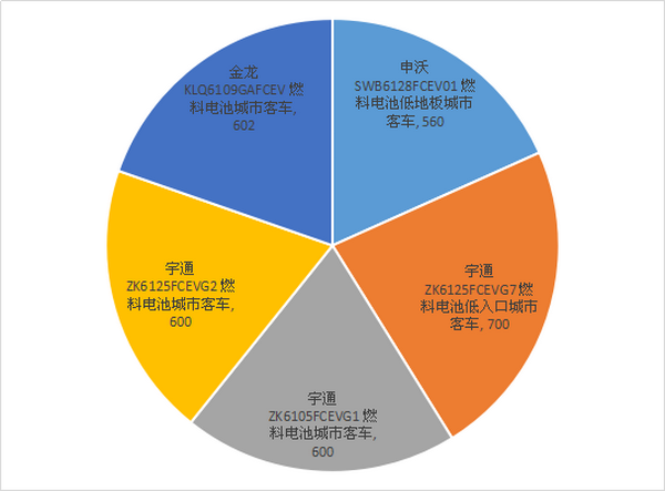 在本批进入减免的7家客车企业的燃料电池客车中,宇通客车位列第一,有6款产品,其次为上海申沃客车,有5款车型,此外福田欧辉客车有3款车型入选;中通客车、南京金龙、安凯客车分别有2款车型入选;金龙客车1款车型入选。
