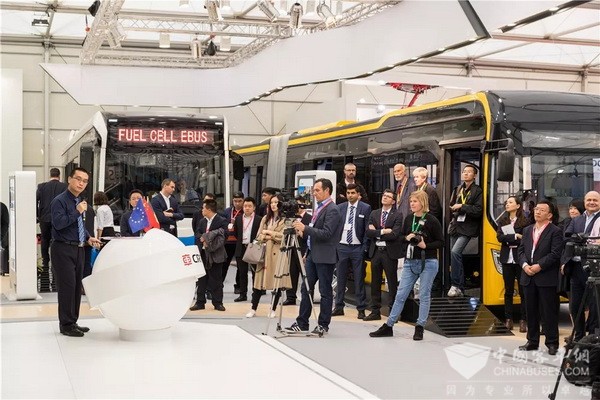 中车电动展出了12米纯电动城市客车,其核心系统,移植了高铁技术多项优势。在满足欧洲技术标准同时,增加了制动电阻,采用直流双枪快充技术,可同时兼容两把“充电枪”充电,充电1小时,车辆可运行260公里。