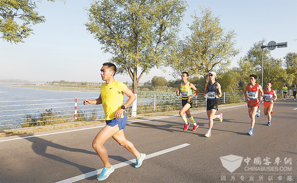 响应本届衡马的公益环保理念,今年衡马的交通保障由衡水公交190台金旅纯电动公交车一力承担。赛事工作人员、参赛选手、观众等,都搭乘这些金旅纯电动公交车参加今年的衡水湖马拉松赛事。作为赛事唯一指定用车,这190辆衡水公交采用纯电驱动,绿色环保、静音舒适,贴合绿色出行的环保理念,使参赛民众更直观的感受“京南第一湖”的秀丽。