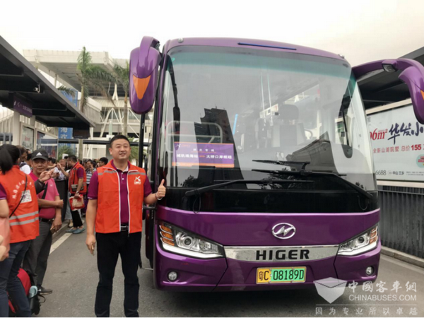 珠海万达通港珠澳大桥珠海口岸客运服务有限公司副总经理陈本德为海格客车点赞