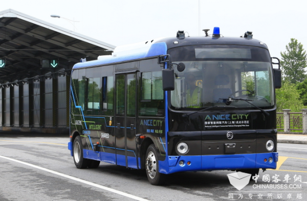 金旅客车6.2米无人驾驶小巴在国家智能网联汽车(上海)试点示范区已经进行了长期无人驾驶测试。在无人驾驶状态下,车辆可以自动前进、转弯和刹车等,实现“智慧”应急处理。