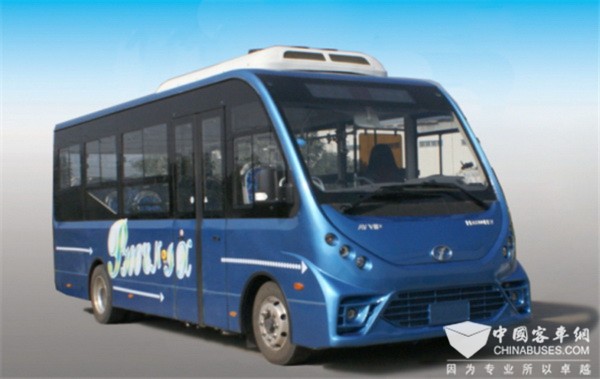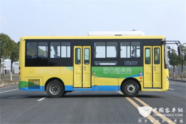 车身采用合金钢,全承载式成型车身骨架,玻璃钢外蒙皮使之抗老化,不易变形,前后轮采用空气悬挂;该车采用永磁同步电机,整车鼓式制动,动力强劲,功率强大,耗电量低;内饰方面,门体采用一级踏板,整车采用铝合金封道,座椅采用侧挂式方式安装。