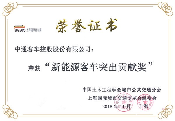 秉承初心,至力于“节能与新能源客车领导品牌”建设理念,多年来,中通客车为社会提供了优质的产品、良好的服务,特别是在新能源客车的研发与推广方面,起到积极的推动作用,基于各界的认可,中通斩获“新能源客车突出贡献奖”,奖项是对前期工作的肯定,更是对未来发展的鞭策。新的起点,相信中通将会做得更好。