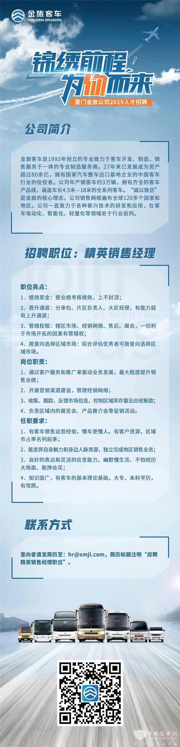 锦绣前程,为你而来!金旅客车招聘精英销售经理
