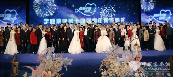 截至目前,宇通集团已成功举办了十四届青年集体婚礼,共有347对新人通过这一平台喜结良缘。