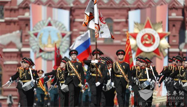 宇通客车能够服务对于俄罗斯人民来说非常重要的红场阅兵活动,源自多年来在俄罗斯市场的深耕。唯有值得信懒的品质才能匹配如此盛大的节日,宇通用行动诠释和传承了对二战胜利日的纪念!