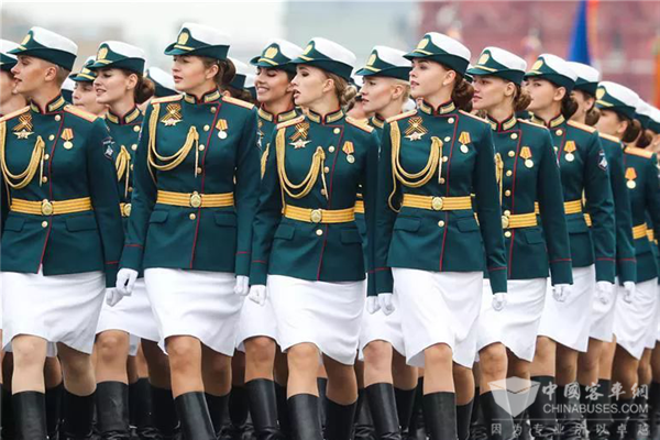 而在红场阅兵期间,由近200台宇通客车组成的“中国客车服务方阵”,则成为莫斯科红场上一道亮丽的风景。