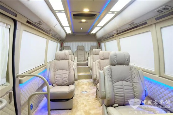 超凡的创新思维,将舒适与品质不断升级。车内配置齐全,布局合理的驾驶室,搭配GPS导航系统,行车记录仪等辅助系统,协助司机安全驾驶。宽敞的车内空间以及合理的座位布局,拉开座椅间距,增加乘客舒适度。选用符合人体工程学座椅,座椅面料考究,最大程度减少旅客疲劳。内饰均采用环保材料,保障驾乘人员的身心健康,让乘客更加舒心。