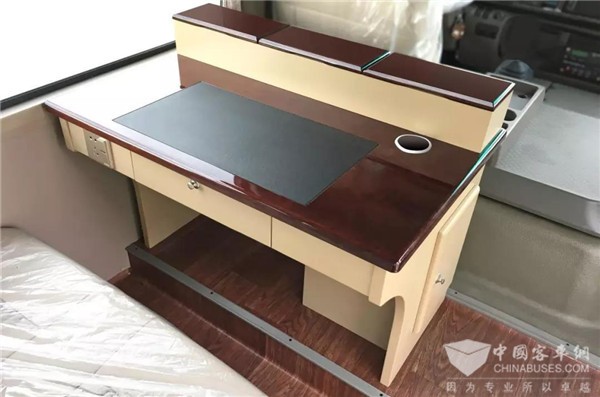 整车配置丰富,驾驶区一体式储物格,方便实用。豪华办公桌,称动的办公空间,让您体验非凡之行。多媒体一体机,让驾驶更自在从容。贴心的环保材料绿色安全,健康一路随行。