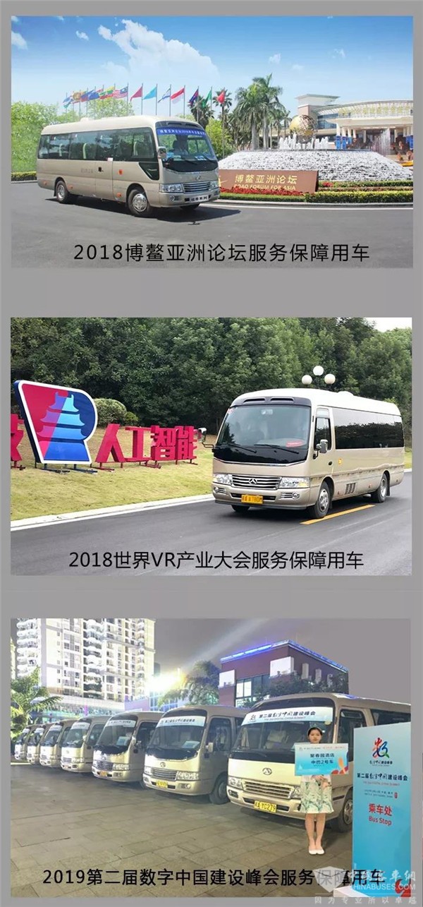 车型自上市以来,已从行业“新秀”逐渐变成了重大会议及活动中的“常客”,并逐步成为高端会议及活动服务用车“代名词”,从“西安世界园艺博览会”、“国际达沃斯论坛”、到“博鳌亚洲论坛”、“世界VR大会”再到“数字中国建设峰会”,福尊客车创造了一个个“零故障”服务纪录,向世界展示了“中国制造”的新形象。