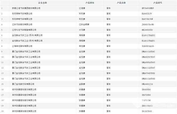 以下为:申报工业和信息化部《道路机动车辆生产企业及产品公告》(第320批)的车辆新产品公示(客车部分)