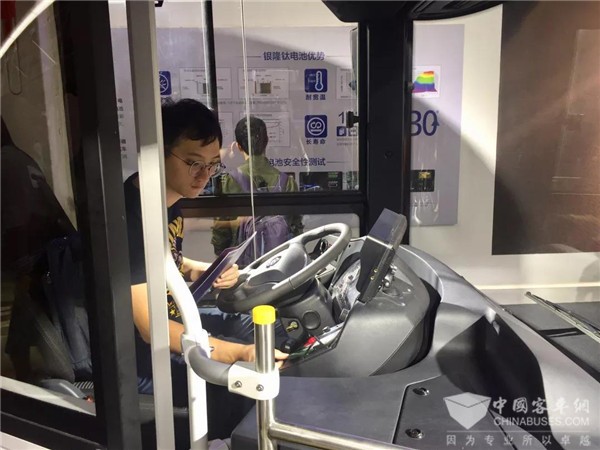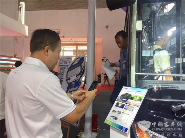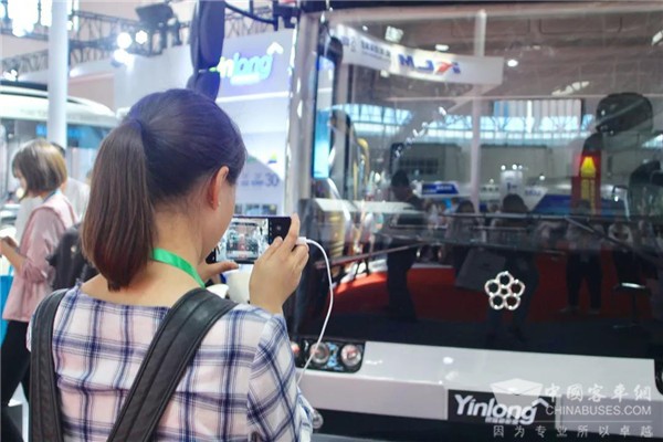 不久前在网上火爆的银隆“高铁级”公交车,此次也来到了展会现场,靓丽的造型、人性化的内部设计吸引了广大参观者的目光。