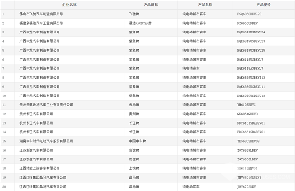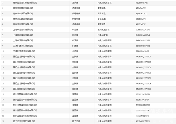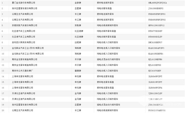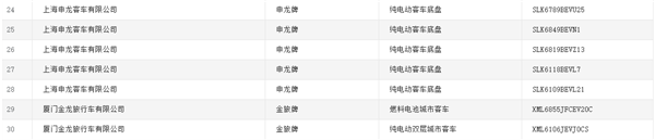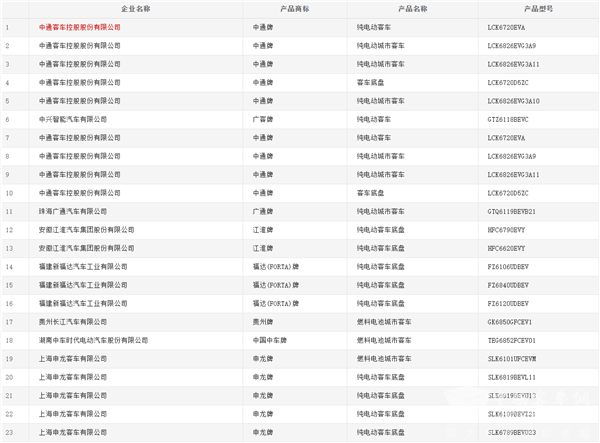 燃料电池客车(含底盘)共12款,其中,有5款来自申龙客车,排名第一;金旅客车与长江汽车各上榜2款,并列第二。