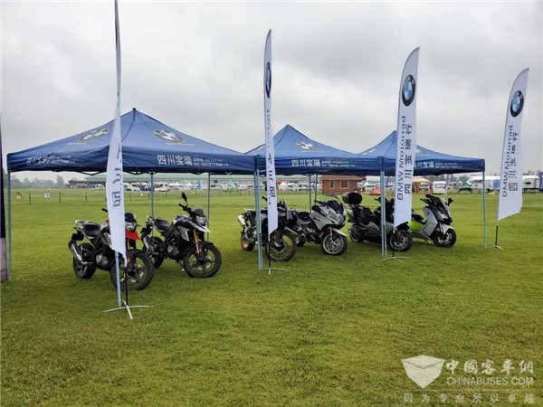 画面一转就到了机车区,帅气的宝马和哈雷戴维森摩托已经摆好了POSE……