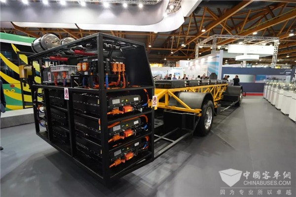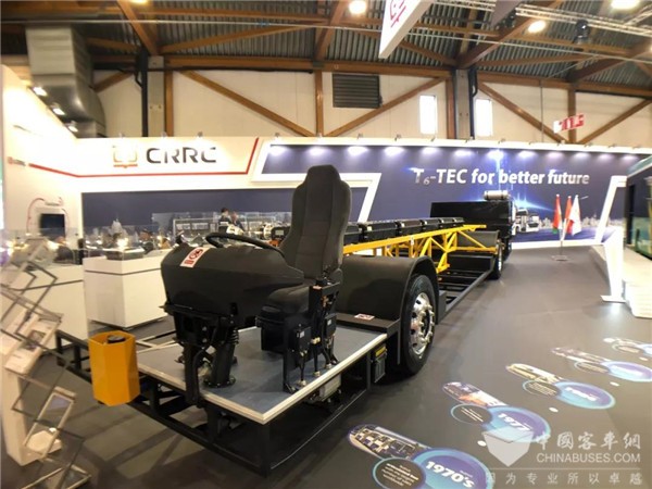 除了“新巴客2.0”,中车电动此次参展的“变形金刚”——12米“可行走底盘”,凭借其领先的技术水平同样被众多业内人士“围观”。