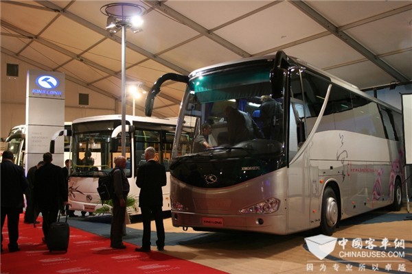 2005年,金龙客车携两款产品首次参展世界客车博览会,成为首家亮相该展会的中国客车身影,在中国客车界引起了不小的震动,更吸引了世界各地用户和媒体的关注,尤其是引起了传统欧洲客车企业的注意。这次“破冰之旅”为金龙客车实现“世界客车在中国,中国客车看金龙”的梦想迈出了坚实一步。