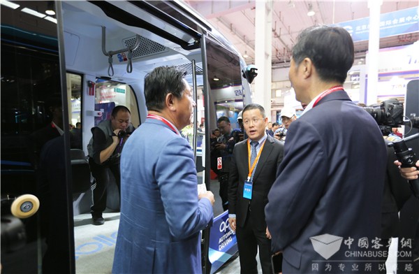 交通运输部副部长刘小明体验展车,金龙客车总经理刘志军陪同