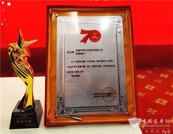 荣膺“商务之星”称号 安凯宝斯通K7载誉前行