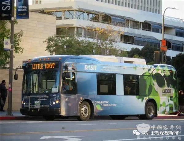 比亚迪大巴在洛杉矶街头运营