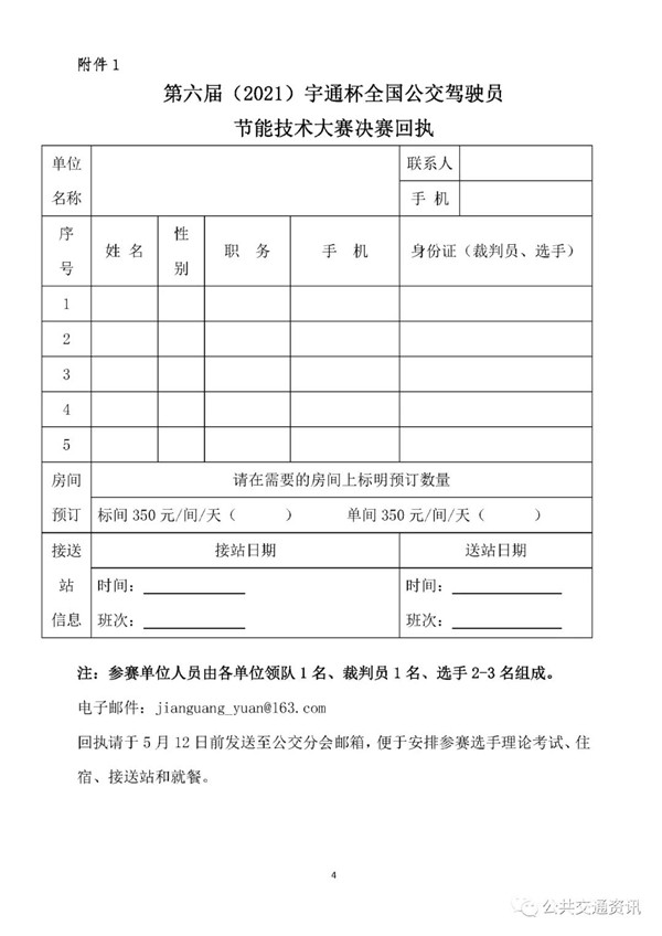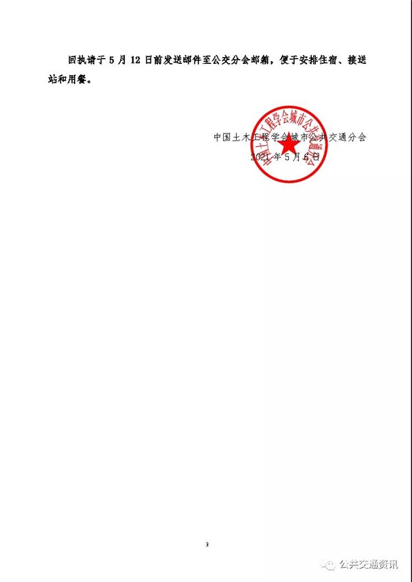 回执请于5月12日前发送邮件至公交分会邮箱,便于安排住宿、接送站和用餐。
