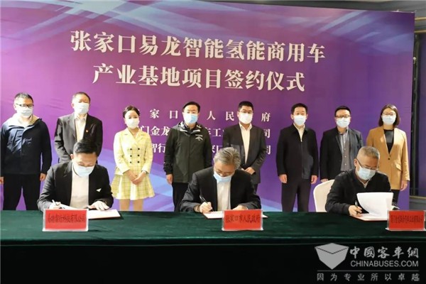 2021年5月9日,张家口市人民政府与厦门金龙联合汽车工业有限公司、易特智行科技(广州)有限公司三方在张家口签约,并在南山经济开发区举行了开工奠基仪式,标志着张家口易龙智能氢能商用车产业基地项目正式落地,将助推张家口创建“氢”新文明之城。