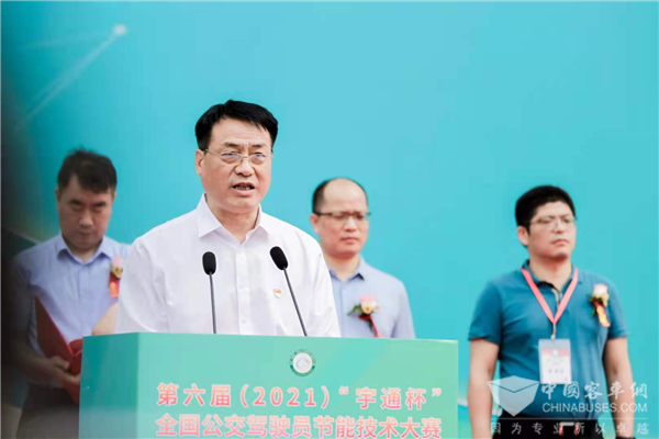 26日9时30分,第六届“宇通杯”全国公交驾驶员节能技术大赛在郑州驾校培训中心拉开序幕,大赛由郑州市公共交通集团有限公司总经理宋霖主持,出席本次开幕式的嘉宾有中国土木工程学会城市公共交通分会秘书长 王丰余;国家工业和信息化部节能与综合利用司原副巡视员、中国电子节能技术协会理事长黄建忠;国家工业和信息化部节能与综合利用司办公室主任赵立华;郑州市交通运输局党组书记、局长翟政;郑州市总工会经济技术和劳动保护部部长宋 慧 ;郑州市公共交通集团有限公司党委书记、董事长赵军伟;上海市交通委工会副主席周建荣;中国土木工程城市公共交通分会副理事长、重庆公共交通控股(集团)有限公司副总经理向勇;包头市公交运输集团有限责任公司党委书记 顾 伟;嘉兴市公共交通有限公司董事长顾铁伟;镇江市公共交通有限公司总经理 凌建锋;宇通客车股份有限公司党委副书记 傅生华; 城市交通网总经理丁永平;公交信息网总经理张巍;中国土木工程学会城市公共交通分会秘书长王丰余宣布大赛正式开幕。