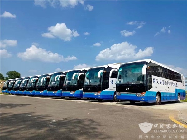 2021年8月11日,金龙客车在河北省张家口市交付10台核酸检测车,为当地全方位部署疫情防控工作提供强有力保障,与张家口市政府共同推动创建“氢”新文明之城,并在张家口多个领域提供美好出行方案。