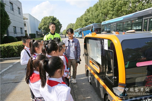 2021年10月26日,苏州金龙海格客车社会开放日,根据苏州市公安局交通管理局、苏州市公安局姑苏分局、苏州市道路交通安全协会、苏州市姑苏区文明办、苏州市姑苏区教体文旅委,联合中央电视台今日说法栏目、看苏州等平台组织策划,由江苏省公安厅交通警察总队指导的“普法进校园,护航成长路”系列宣传活动计划,第四场活动如期举行。本次活动由姑苏分局交警大队联合园区分局交警大队邀请彩香教育集团20位学生走进苏州金龙海格客车,体验无人驾驶巴士,学习交通安全知识。