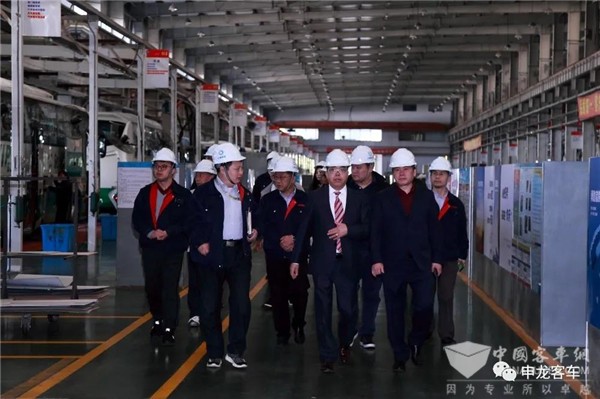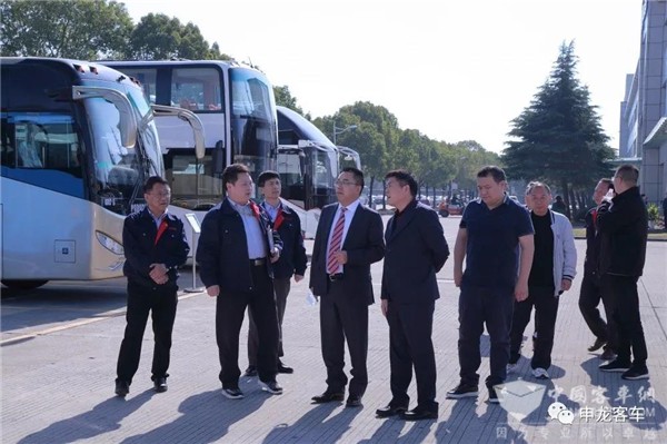 渔阳集团党委书记、董事长李伟杰等一行5人首先来到样车展示中心,登上样车,感受申龙客车的乘坐体验。随后,在工作人员的带领下,详细参观了申龙客车的总装车间、涂装车间、焊装车间、试验中心。
