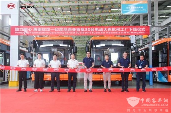 印度尼西亚首批30台比亚迪纯电动大巴在比亚迪杭州工厂成功下线